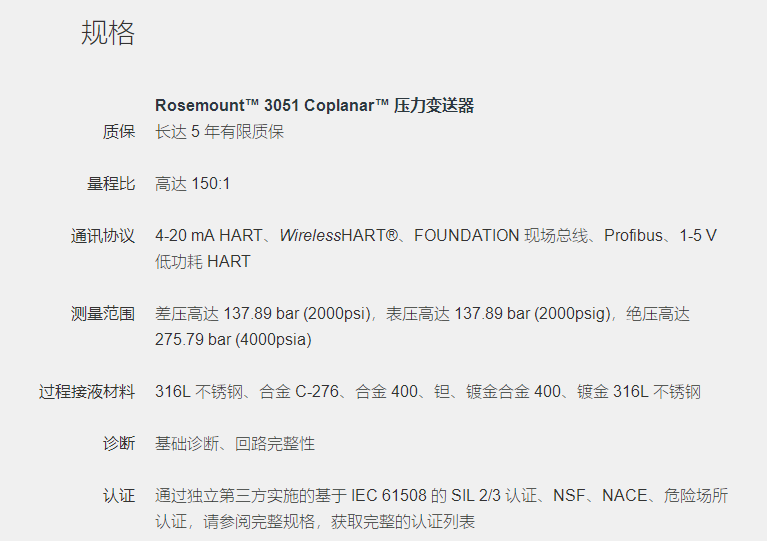 罗斯蒙特 3051G 直接安装式压力变送器