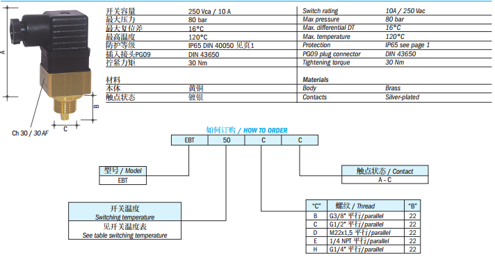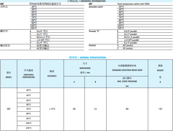 NTBC系列 固定设定点和DIN插头的温度控制器