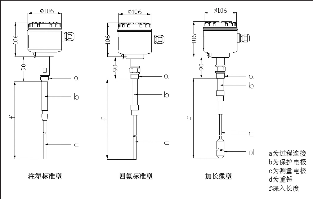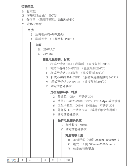 RPD20系列射频导纳系列为通用型点位控制仪表,仪表由一个电路单元,一套防爆外壳和杆式或缆式传感元件(亦称传感器或探头)组成,传感器可选多种材质,可整体或分体型安装。整体安装指将电路单元和传感元件配置在一个防爆外壳上,分体型安装指电路单元和传感元件分别配置在两个独立的防爆外壳上,中间用厂家特制的电缆连接。